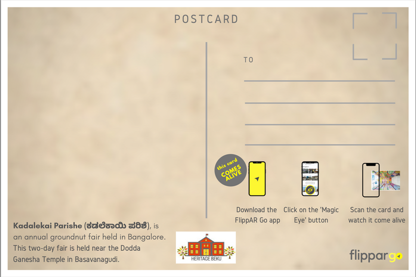 FlipAR has developed this delicately painted postcard for Heritage Beku that brings the Kadalekai Parishe story alive. Hitech and tradition in one postcard ! Swipe right ...